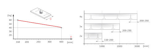 Skrytá podpera pre police s hrúbkou od 40 mm. Polohu políc možno nastaviť 3 spôsobmi - vertikálne, horizontálne a je možné meniť aj sklon políc.